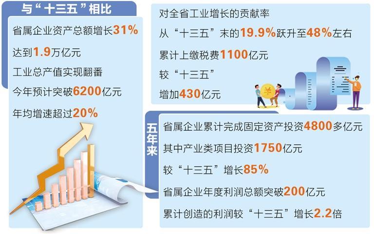 記者從省政府新聞辦12月2日召開(kāi)的“決勝收官‘十四五’ 爭(zhēng)先進(jìn)位話發(fā)展”主題系列新聞發(fā)布會(huì)上獲悉,省國(guó)資國(guó)企系統(tǒng)圓滿完成“十四五”規(guī)劃目標(biāo)任務(wù)。與“十三五”相比,省屬企業(yè)資產(chǎn)總額增長(zhǎng)31%、達(dá)到1.9萬(wàn)億元,工業(yè)總產(chǎn)值實(shí)現(xiàn)翻番,今年預(yù)計(jì)突破6200億元,年均增速超過(guò)20%,對(duì)全省工業(yè)增長(zhǎng)的貢獻(xiàn)率,從“十三五”末的19.9%躍升至48%左右,累計(jì)上繳稅費(fèi)1100億元,較“十三五”增加430億元。